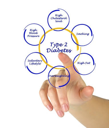 Unlike type 1 diabetes, the symptoms for type 2 diabetes can be more subtle, occurring slowly over a long period of time. A low activity level, a poor diet, and excessive body weight are all risk factors. Many people with type 2 diabetes have these known risk factors and high blood sugars, and are not aware that they have diabetes.